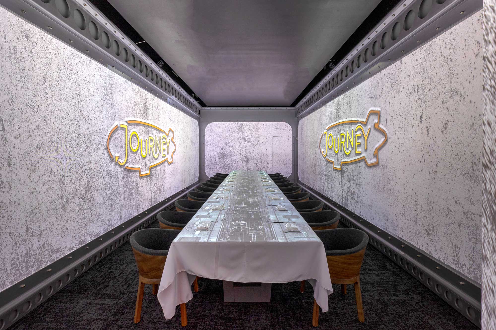 JOURNEY, a unique dining entertainment enterprise, introduces theatrical gastronomy to New York City, with an exciting blend of immersive video installations, fine dining, fashion tech and theatre. Created through the collaboration of a top team culled from the worlds of Broadway, fashion, multi-media and the culinary arts, JOURNEY is a wholly original experience.